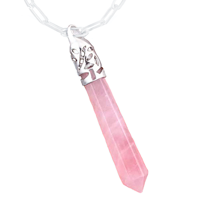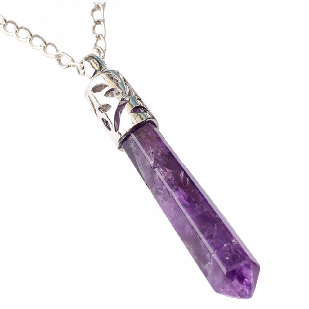 Amethyst or Clear Quartz or Rose Quartz Reiki Hexagon Point Pendant Necklace