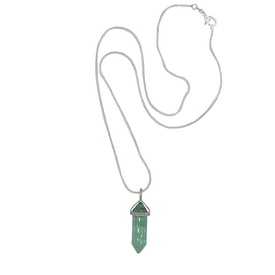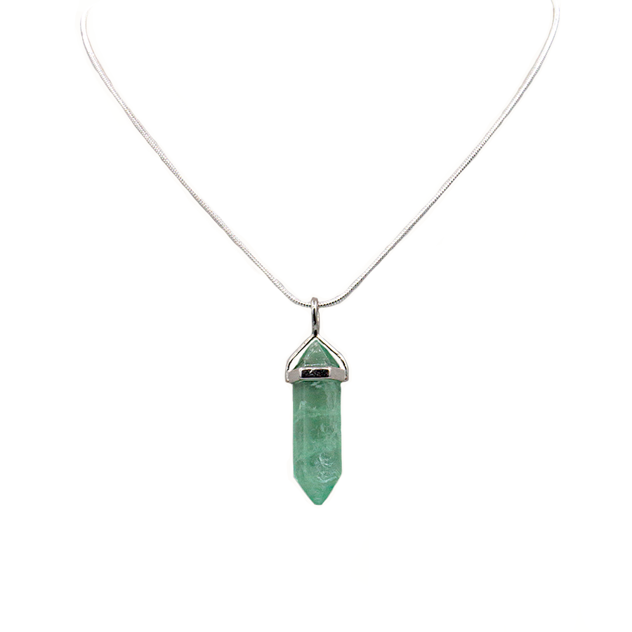 Fluorite Green Hexagon Point Necklace on Sterling Silver 22" Chain or Black Cord