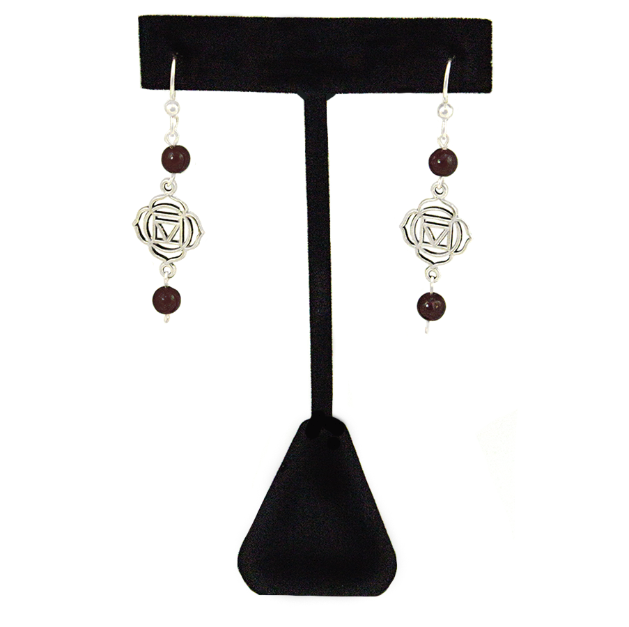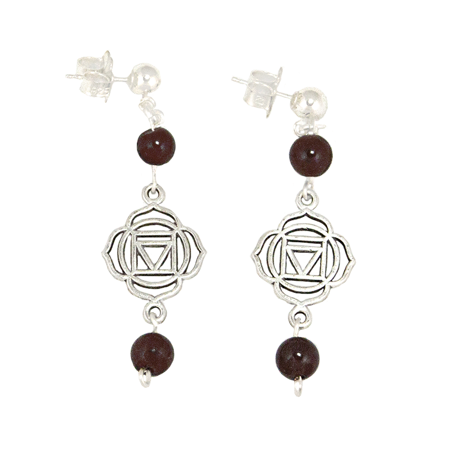 Garnet Root Chakra (Muladhara Symbol) Earrings in Antique Silver