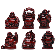 Our Laughing Buddha statues are meticulously crafted from durable red resin, symbolizing auspiciousness and vitality. Each statue stands approximately 2 inches high and 1 3/4 inches wide, with slight variations adding to their unique charm.