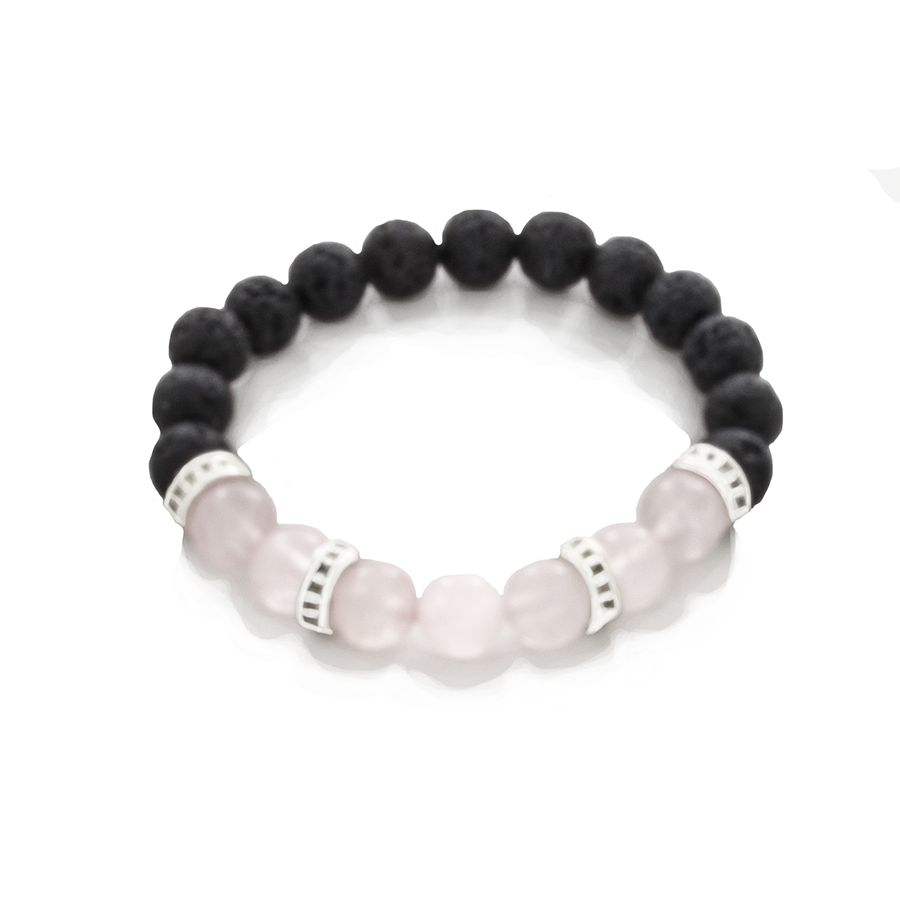 Rose Quartz, Lava, and Sterling Silver Stretch Infusion Bracelet-Good Feng Shui-for all genders
